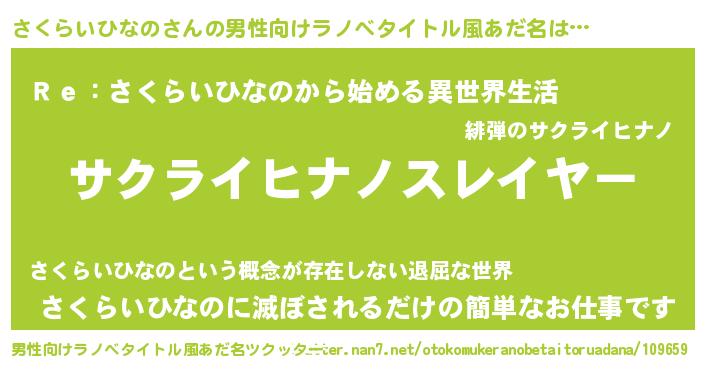 | 伝説のあだ名 | 『聞きしに勝る勇者さくらいひなの』 |