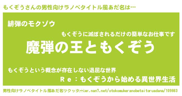 | ヒーロー風カッコイイあだ名 | 『仮面モクダー』『超時空戦士モクゾウ』 |