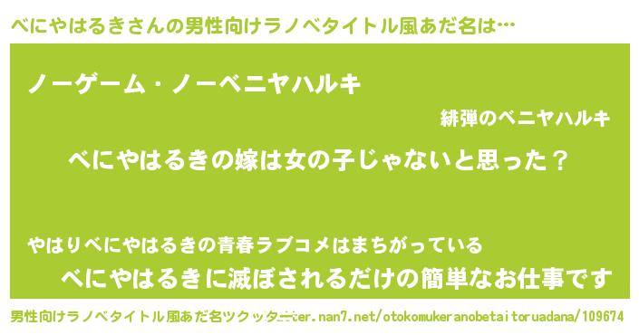 | 意味不明あだ名 | 『とにかく怪しいべにやはるき』 |