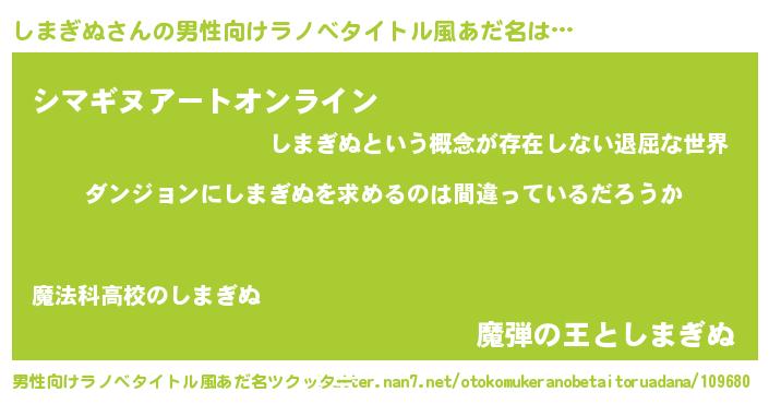 | 女子向けラノベタイトル風あだ名 | 『しまぎぬは平凡を望む』 |