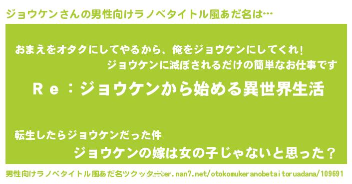 | 女子向けラノベタイトル風あだ名 | 『闇のジョウケン』 |