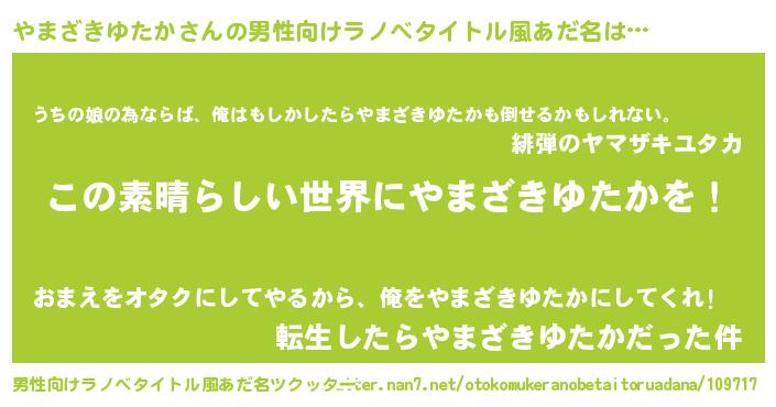 | 意味不明あだ名 | 『住所不定無職やまざきゆたか(40歳)』 |