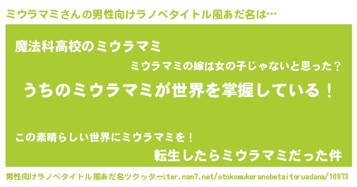 | 女子向けラノベタイトル風あだ名 | 『男装ミウラマミの憂鬱な任務』 |
