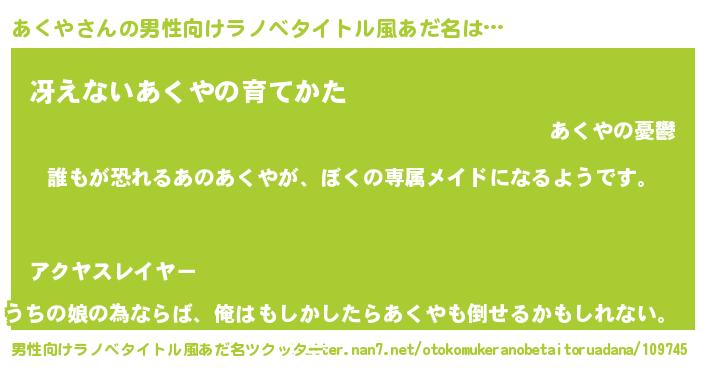 | 女子向けラノベタイトル風あだ名 | 『異世界でカフェあくやを開店しました。』 |