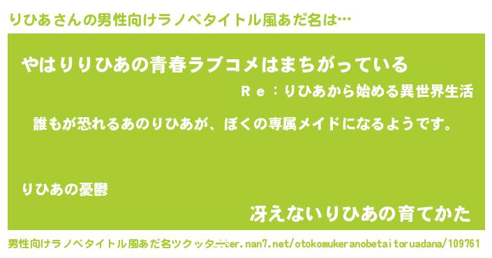 | ヘコむあだ名 | 『りひあ(小並感)』『なまこ酢』 |