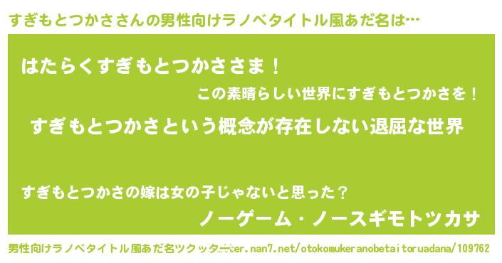 | 胡散臭い通販商品みたいなあだ名 | 『来世でも幸せになれる水素水…その名も「すぎもとつかさ」』 |
