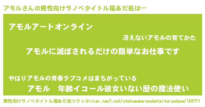 | 胡散臭い通販商品みたいなあだ名 | 『億万長者になれる霊験あらたかなお札…その名も「アモル」』 |