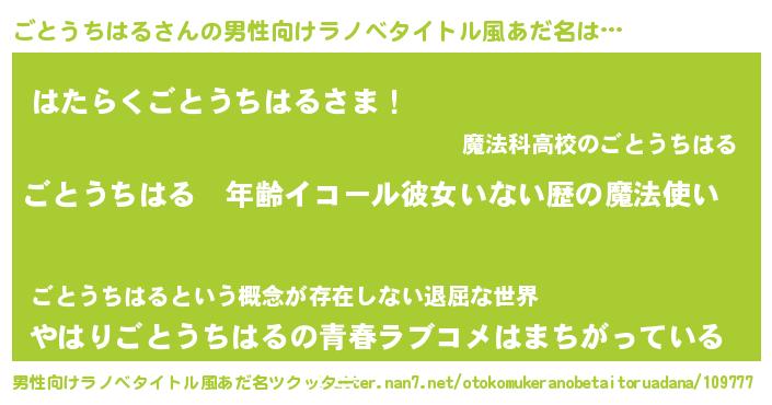 | 女子向けラノベタイトル風あだ名 | 『ごとうちはるの玉の輿計画!』 |