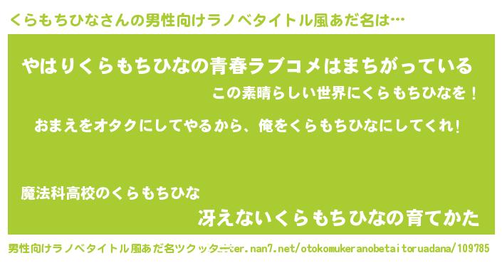 | 女子向けラノベタイトル風あだ名 | 『くらもちひな夫妻のなれそめ』 |