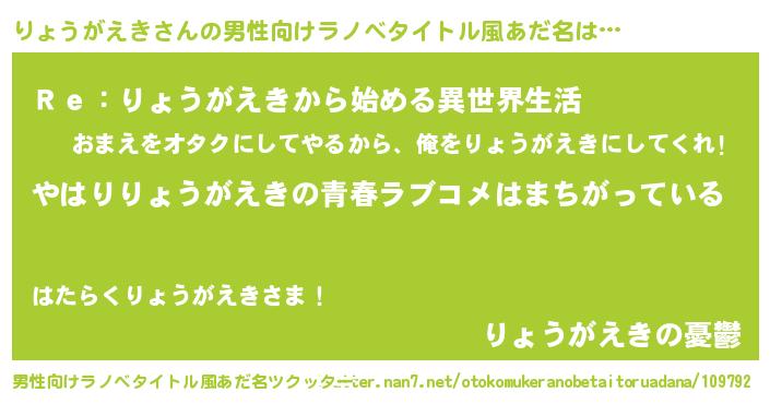 | 女子向けラノベタイトル風あだ名 | 『りょうがえきの雑貨屋さん』 |