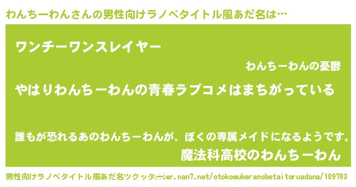 | 女子向けラノベタイトル風あだ名 | 『わんちーわんの雑貨屋さん』 |