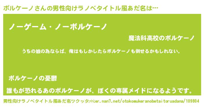 | 女子向けラノベタイトル風あだ名 | 『ボルケーノ伯爵の花嫁』 |