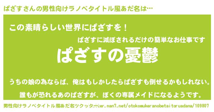 | 女子向けラノベタイトル風あだ名 | 『(仮)ぱざすのやんごとなき事情』 |