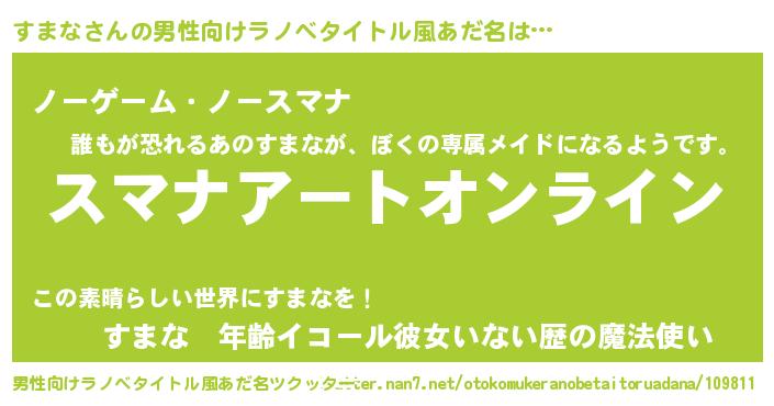 | 胡散臭い通販商品みたいなあだ名 | 『モテモテ間違いなし霊験あらたかなお札…その名も「すまな」』 |