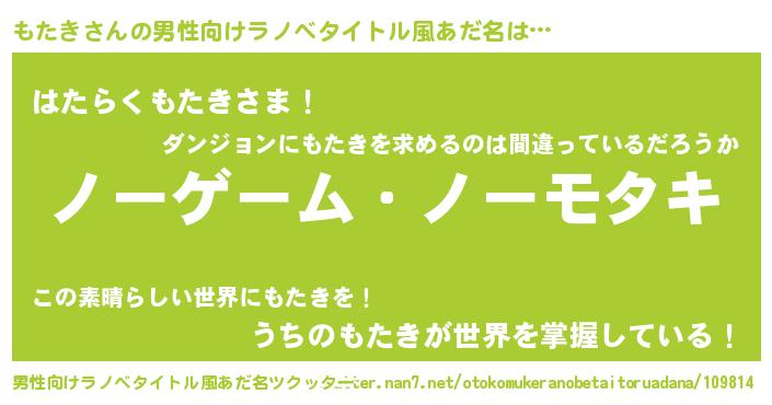 | 女子向けラノベタイトル風あだ名 | 『もたき恋絵巻』『首の姫と首なしもたき』 |
