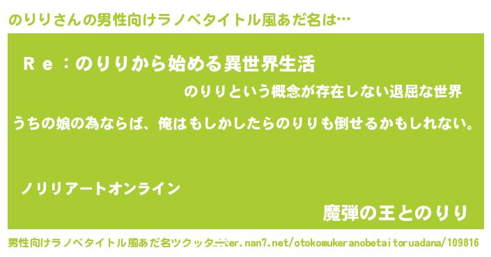 | 女子向けラノベタイトル風あだ名 | 『のりりの婚約者』 |
