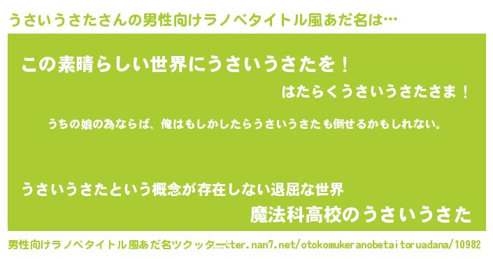 | 胡散臭い通販商品みたいなあだ名 | 『運命の人と巡り会える高級そうな皿…その名も「うさいうさた」』 |
