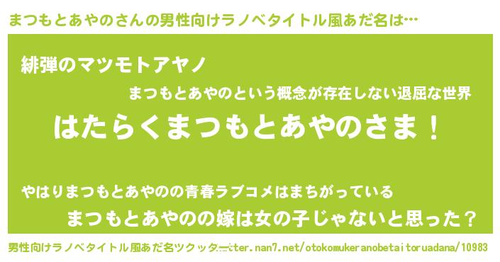 | 意味不明あだ名 | 『とにかく怪しいまつもとあやの』 |