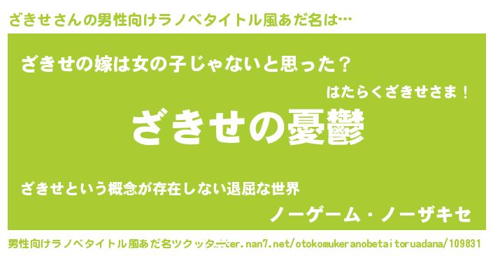 | 胡散臭い通販商品みたいなあだ名 | 『必ず成功する霊験あらたかなお札…その名も「ざきせ」』 |