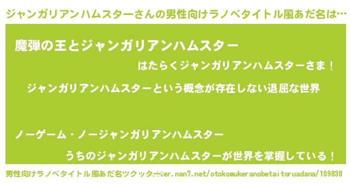 | 女子向けラノベタイトル風あだ名 | 『異世界で失敗しない100のジャンガリアンハムスター』 |