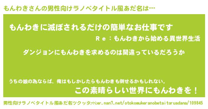 | 女子向けラノベタイトル風あだ名 | 『もんわきは平凡を望む』 |
