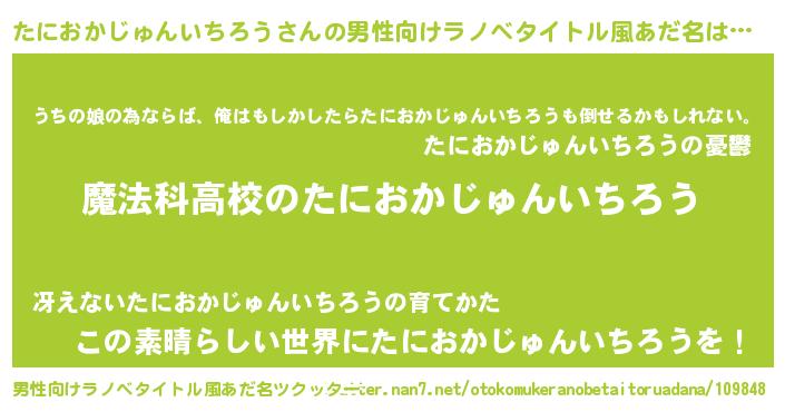たにおかじゅんいちろうさんの男性向けラノベタイトル風あだ名をツクッター!