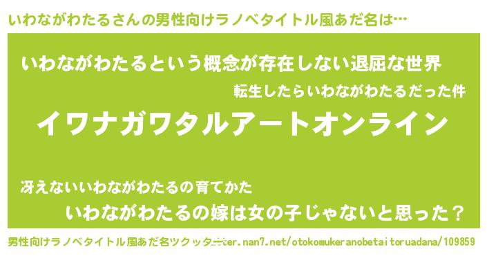 | ヘコむあだ名 | 『いわにー』『いわながわたる(笑)』 |