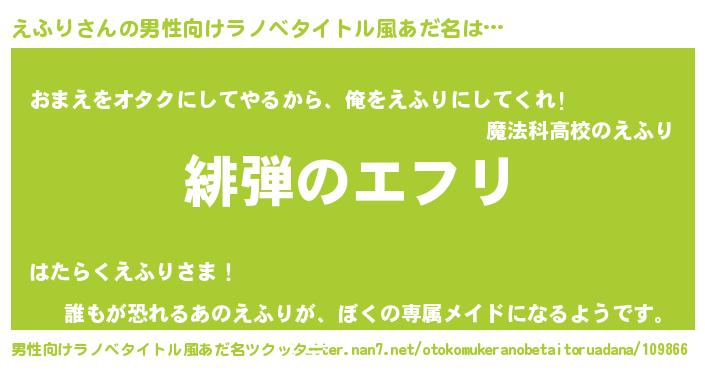 えふりさんの男性向けラノベタイトル風あだ名をツクッター!