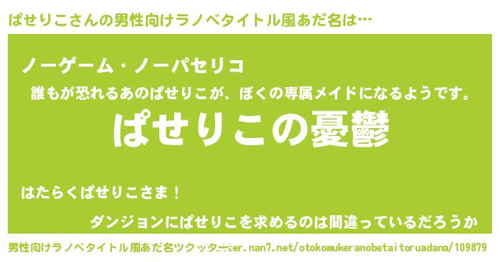 | 女子向けラノベタイトル風あだ名 | 『ぱせりこ姫と円卓の騎士』 |