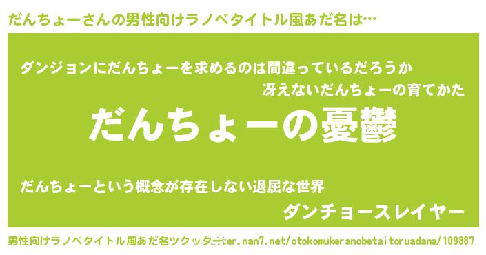 | 女子向けラノベタイトル風あだ名 | 『(仮)だんちょーのやんごとなき事情』 |