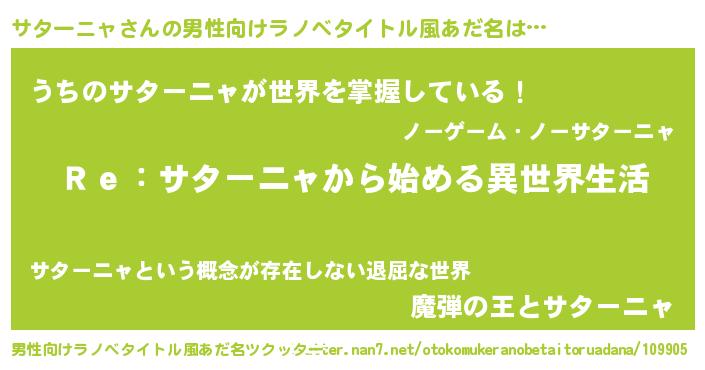 | 女子向けラノベタイトル風あだ名 | 『闇のサターニャ』 |