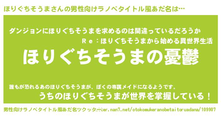 | 胡散臭い通販商品みたいなあだ名 | 『モテモテ間違いなし霊験あらたかなお札…その名も「ほりぐちそうま」』 |