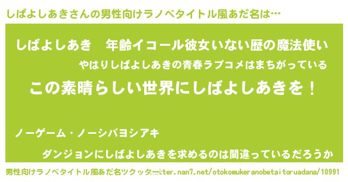 | 意味不明あだ名 | 『住所不定無職しばよしあき(4歳)』 |