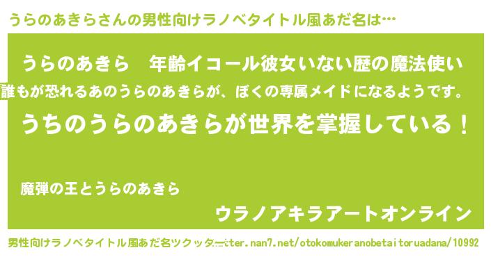 | 胡散臭い通販商品みたいなあだ名 | 『億万長者になれるブレスレット…その名も「うらのあきら」』 |