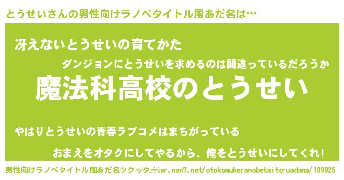 | 女子向けラノベタイトル風あだ名 | 『とうせいアンティーク』 |