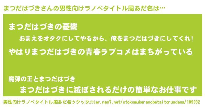 | 女子向けラノベタイトル風あだ名 | 『まつだはづき伯爵の花嫁』 |