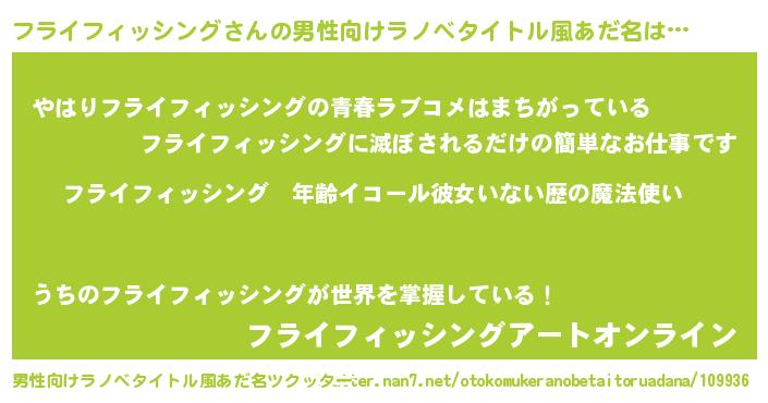 | 女子向けラノベタイトル風あだ名 | 『フライフィッシングの玉の輿計画!』 |