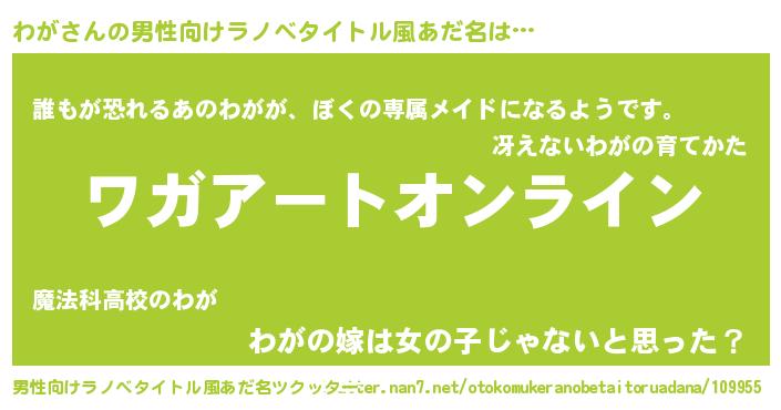 | 胡散臭い通販商品みたいなあだ名 | 『モテモテ間違いなし霊験あらたかなお札…その名も「わが」』 |