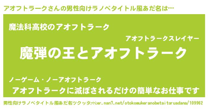 | 女子向けラノベタイトル風あだ名 | 『アオフトラークが死なない童話 林檎のアオフトラークの診療簿』 |
