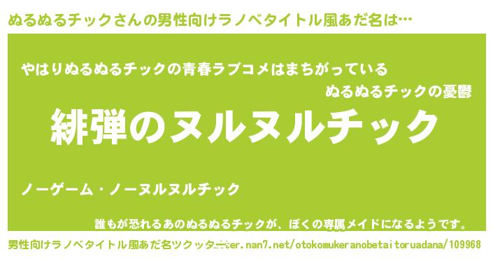 | 意味不明あだ名 | 『ぬるぬるチックフォーエバー』 |