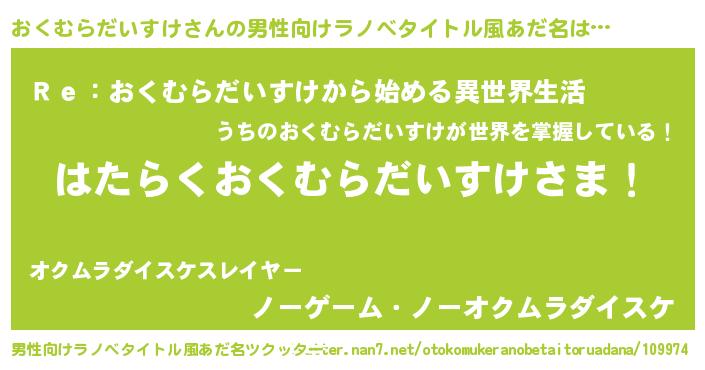 | 意味不明あだ名 | 『自称おくむらだいすけ』 |