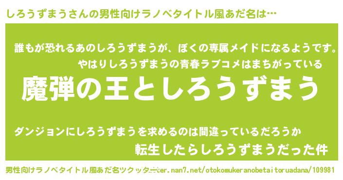 しろうずまうさんの男性向けラノベタイトル風あだ名をツクッター!