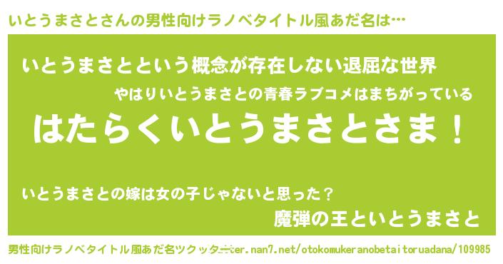 | 意味不明あだ名 | 『永久保存いとうまさと』 |