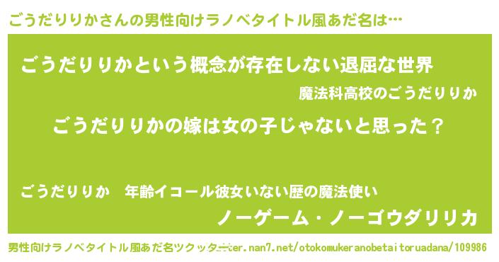 | 女子向けラノベタイトル風あだ名 | 『ごうだりりか様がみてる』 |