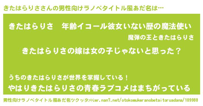 | 女子向けラノベタイトル風あだ名 | 『きたはらりさ様がみてる』 |