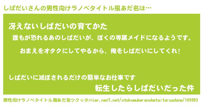 | 女子向けラノベタイトル風あだ名 | 『しばだい夫妻のなれそめ』 |