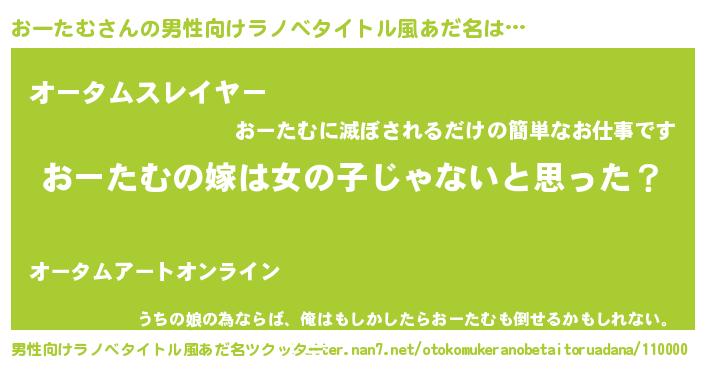 | 女子向けラノベタイトル風あだ名 | 『おーたむ様がみてる』 |