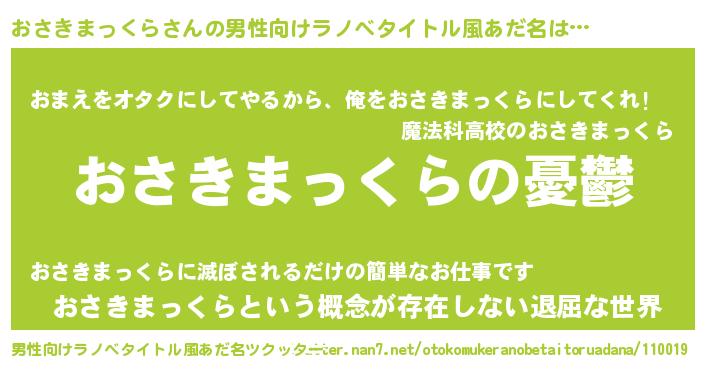 | 女子向けラノベタイトル風あだ名 | 『(仮)おさきまっくらのやんごとなき事情』 |