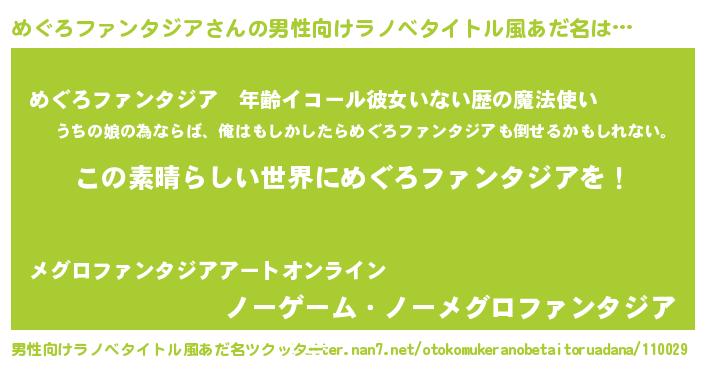 | 意味不明あだ名 | 『住所不定無職めぐろファンタジア(81歳)』 |