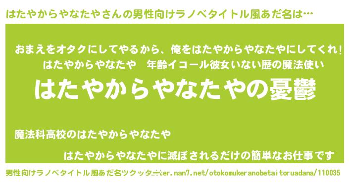 | 女子向けラノベタイトル風あだ名 | 『(仮)はたやからやなたやのやんごとなき事情』 |